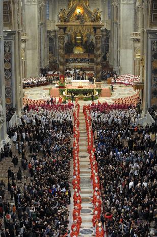 • A cerimônia foi aberta a todos que conseguiram lugar, presidida pelo cardeal decano, o italiano Angelo Sodano, e concelebrada por todos os demais cardeais, não apenas os votantes.